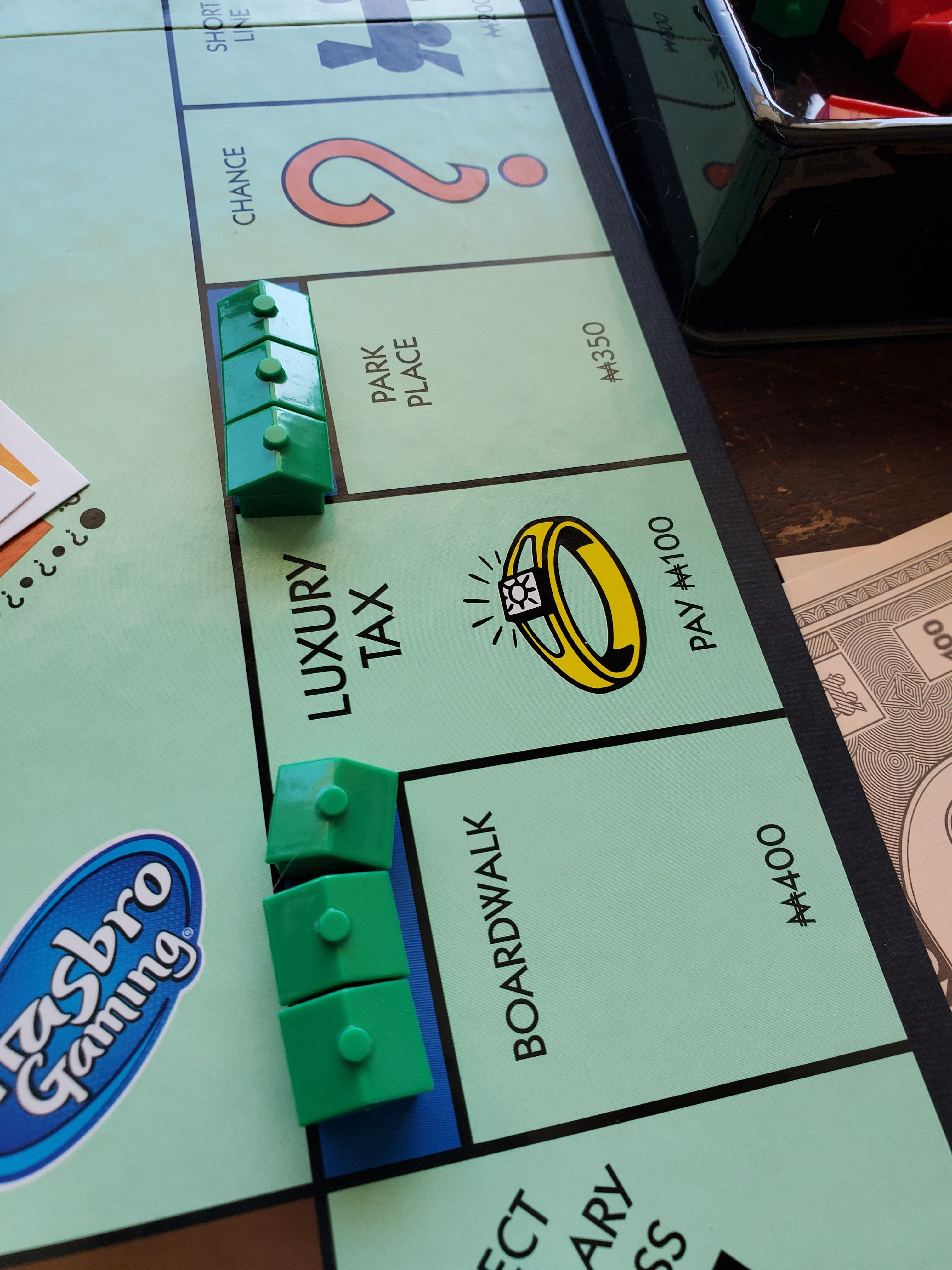 She was so focused on the railroads, I kind of tricked her so I could have Park Place.