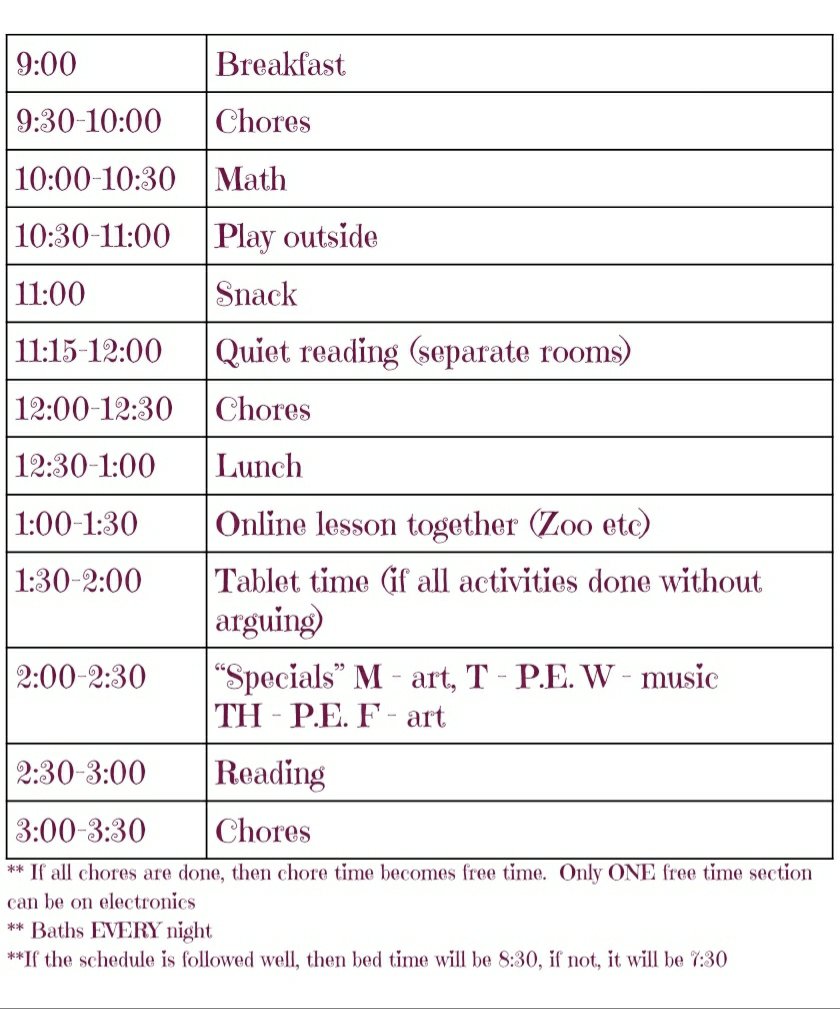 We also created a schedule for the coming week. Turns out, chaos isn’t good for us…